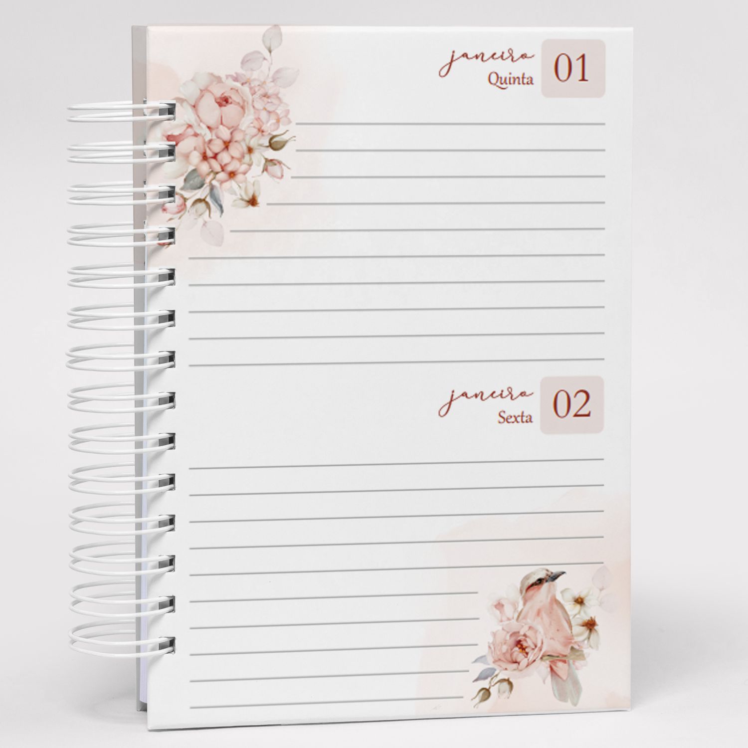 Agenda 2026 Floral refúgio, possui 2 dias por página datada, Capa Dura Laminada no tamanho A5,