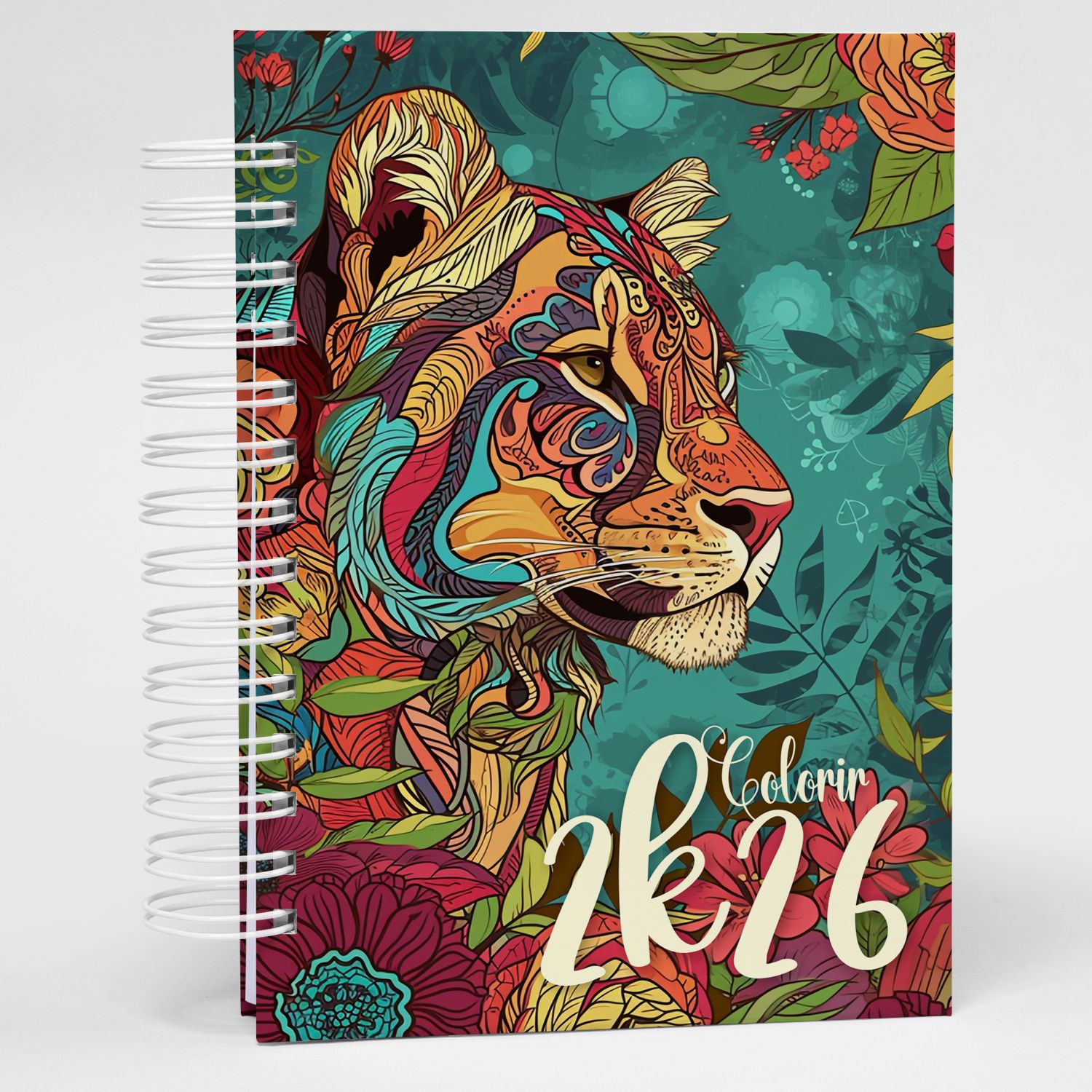 Agenda 2026 com 1 dia por folha, páginas datadas, Capa Dura Laminada no tamanho A5,